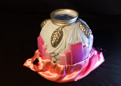 Elegant spherical shape with rich decoration very in relief, featuring pine cones and geometric patterns in cameo blue glass with silver and rose tones. The vase is not signed. However, two same shape vases presented in our vase collection are signed “P. de Cagny ” (V_102_20) and “Vianne”(V_101_22).